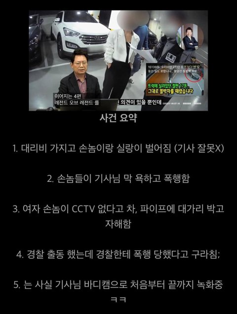 저분 정말 침착하게 잘 대처하신게 바디캠있다는 말을 끝까지 안 하심. 고소까지가서 무고죄 먹일 큰그림을 그리시나봄. 경찰에서 저 사람들 주장 더 믿는거같다는 식으로 막판에 나오는데 일타쌍피로 싹다 날릴 듯