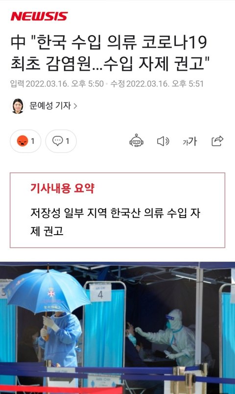 우리나라 의류에 묻었음 우리나라 사람이 최초로 걸려야 맞지 저걸 말이라고 하고있네