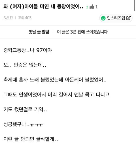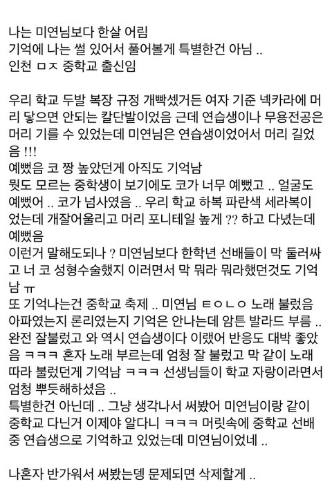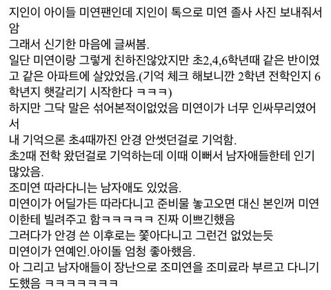 아이들 미연이랑 프로미스나인 이서연 둘다 같은 중이던데 같 이 연습생했던 거네 신기하당 아이들 갤에 동창이 글 써줌 ㅎㅎ