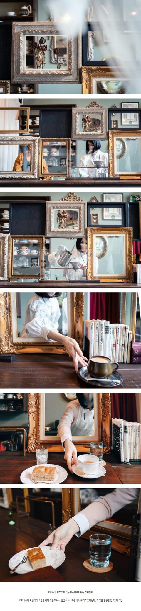 영화 링 컨셉으로 TV한대 놓고 머리늘어뜨리고 나와서 눈부릅뜨고 커피 주면 잼날듯~ㅋ