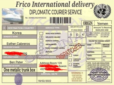 b. 예멘정부에서 자기에게 막대한 보너스를 현찰로 주기로 하였다고 함 => 여기서부터 Scam임을 감지