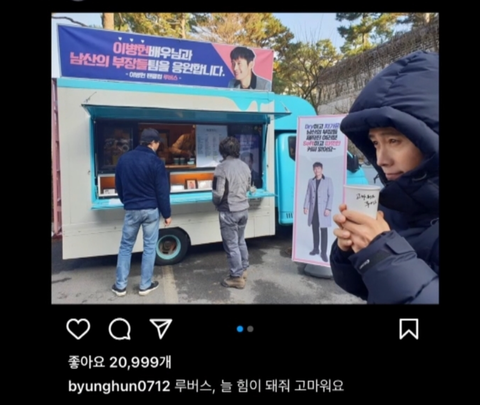 특히 이병헌이 커피차 인증한 사진에
