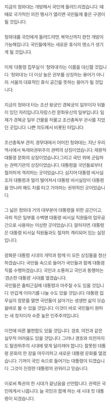 청와대 이전 발표문이래