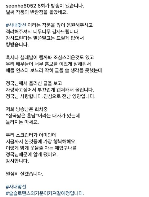 정구기가 사내맞선 본다니까 사내맞선 감독님이 전남 영광이라고 하심ㅋㅋㅋㅋㅋㅋㅋㅋㅋ 남은 회차 중에 정국 닮은 훈남이라는 대사있다고 놀라지 말래ㅋㅋㅋㅋㅋㅋㅋㅋㅋㅋㅋ 개웃긴ㅋㅋㅋㅋㅋㅋ