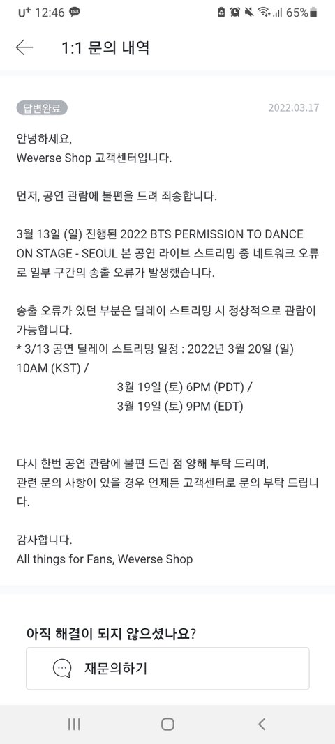 걍 하이브에서 송출 오류 있었던 거 맞네ㅠㅠㅠㅠ