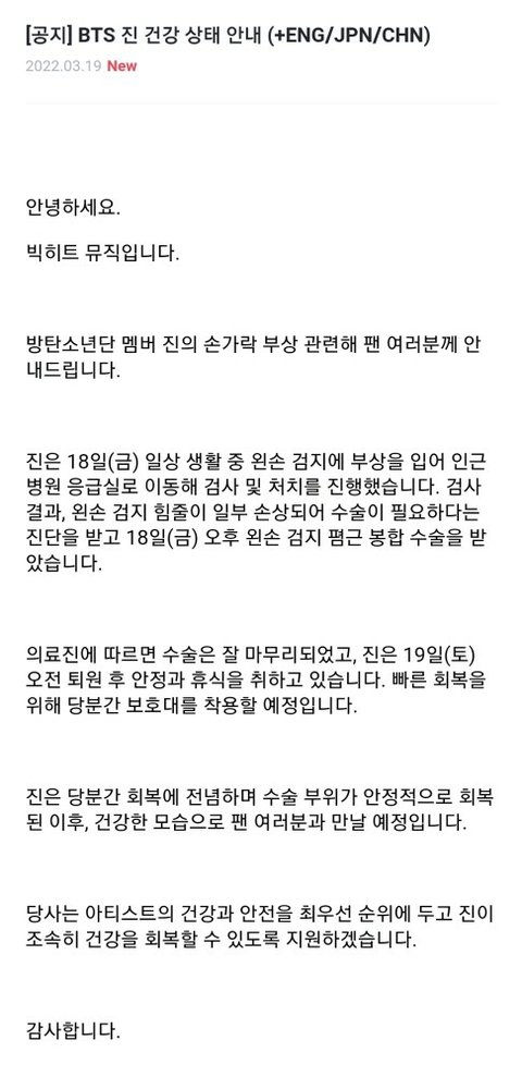 수술 잘되고 잘 회복중 이라니까 괜찮은거지...?