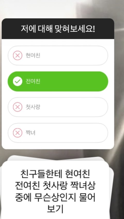 요즘 유행하길래 나도 스토리 올려봤단 말야 근데 다 전여친상에다가 눌러서 물어보니까 그냥 전여친 같다는데 이게 뭔 느낌인가 궁금해
