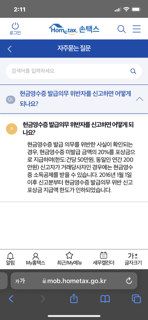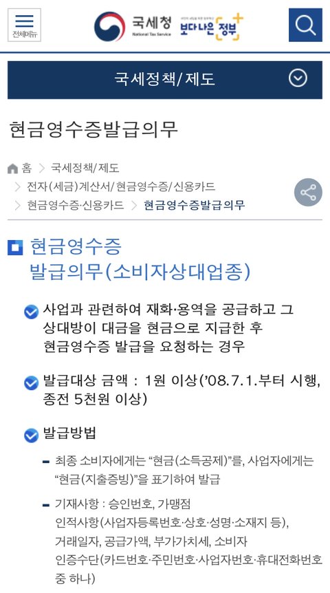 마지막으로 현금영수증 미발행 신고를 하면 신고금액의 20% 포상금을 준다고 하네요~