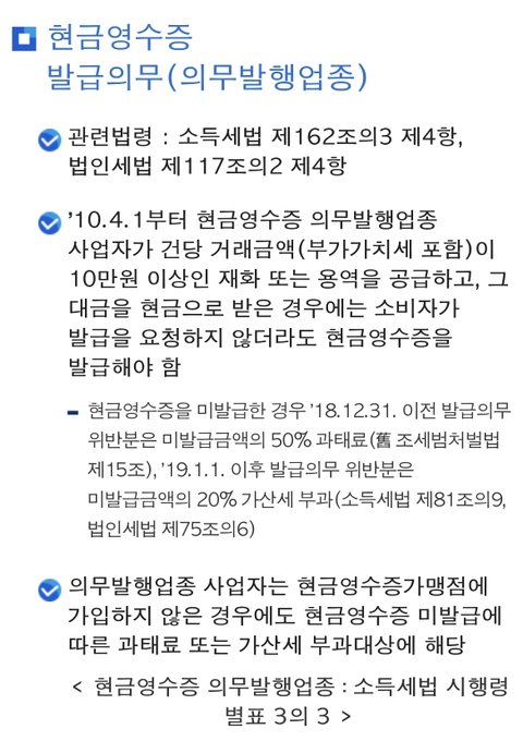 예를 들어 손님이 “저 현금영수증 필요없어요” 하고 현금 11만원을 내고 나갔더라도 자진으로 발급해야하는 업종이라는 뜻입니다