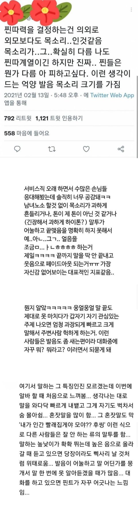 진짜 말만 자신감있게 또박또박 말할 수 있으면 아무리 조용하고 화장 안 하고 거지같은 옷을 입고 다녀도 아무도 찐따같다고 뒷말 안 나옴ㄹㅇ