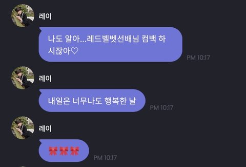 레이는 조이선배님 짱팬이기 때무내 컴백날짜는 당연히 알쥐