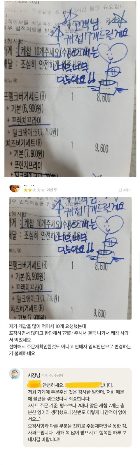 요청 안 들어줬다고 배민 별점 2개 준 사람