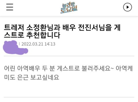 어떤 작성자가 정환이 놀토 게스트로 추천했대ㅎㅎ