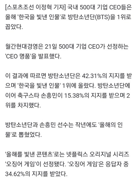 한국 500대 기업 ceo가 뽑은 올해의 인물과 컨텐츠
