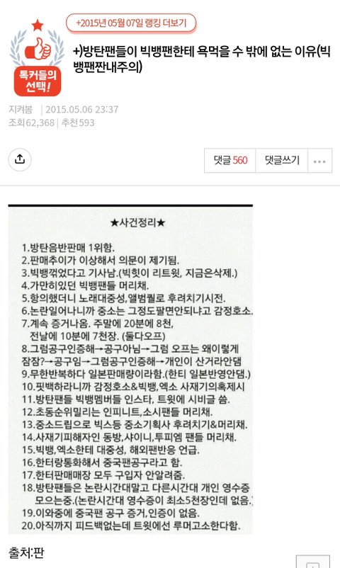 방탄 사재기 루머 빅뱅팬이 퍼트린거아니야