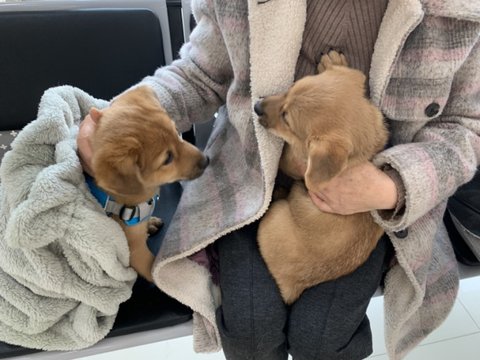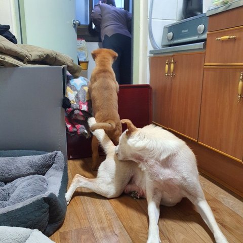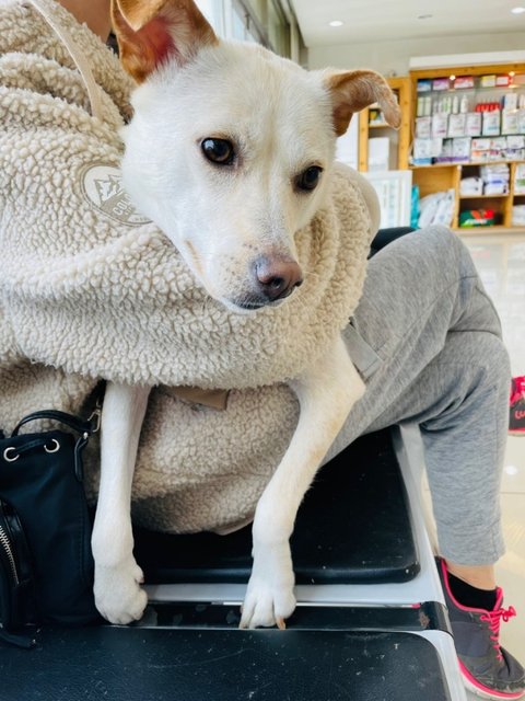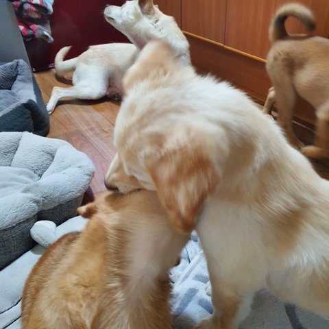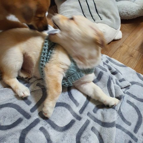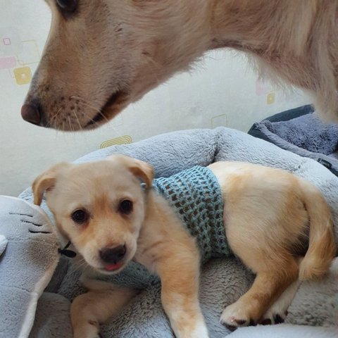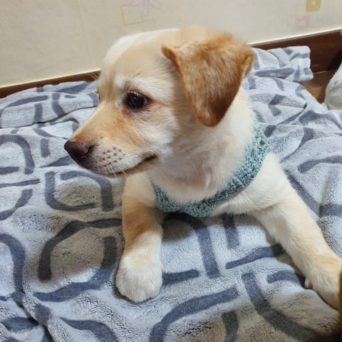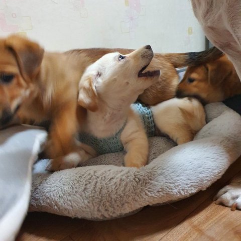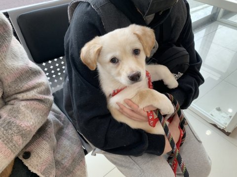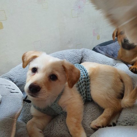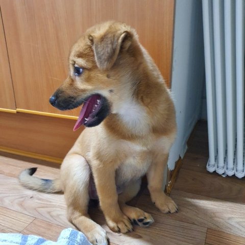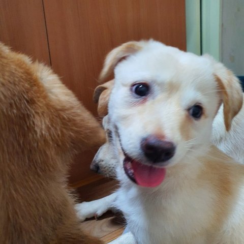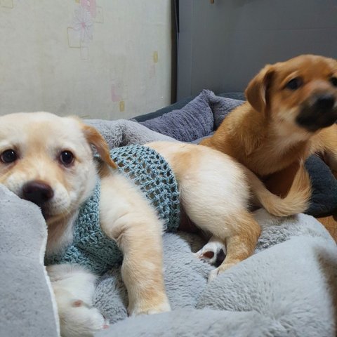 노랑 - 여아, 황구, 다리가 길어요. 털이 부들부들해요. 잘 놀아요.