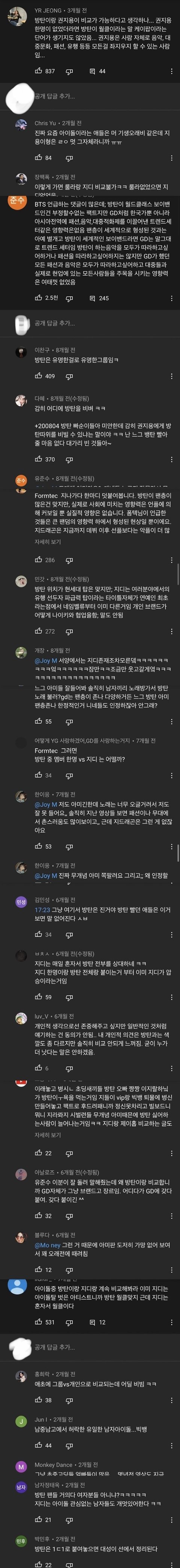 지디 빅뱅 영상 댓글 다 이럼