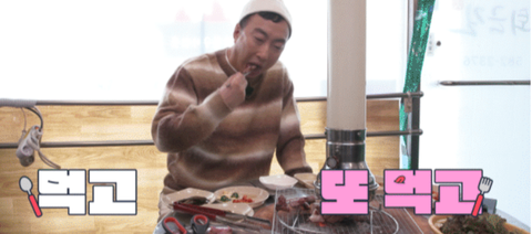 고기 먹다가 갑자기 기념촬영하는 현주엽ㅋㅋㅋ