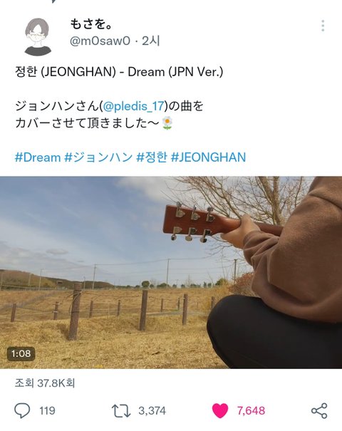 정한이 드림 커버해서 올려주셨다ㅠㅠㅠ