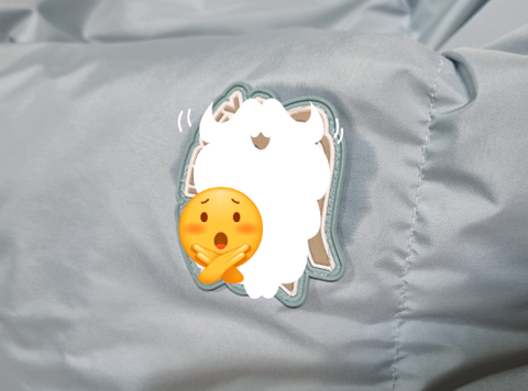 처음 발견한 하자입니다. 오른쪽 소매 패치 로고입니다.