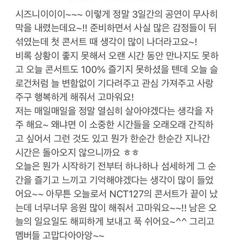 정우 콘서트 끝나고 올린 글