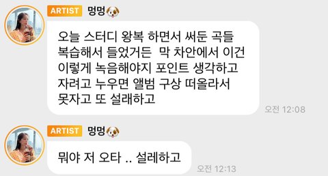 원래 이번주 토요일에 있을 팬미팅에서도 노래 잔뜩 불러주려고 연습을 얼마나 열심히 했다고... (어제 세정이가 코로나 양성 판정 받아서 연기됐지만)