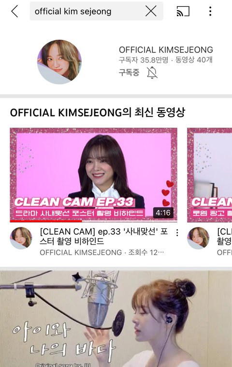 기다리기 힘든 사람들은 유튜브에 ‘Official Kimsejeong’ 치면 젤피에서 하는 세정이 공식 유튜브 있으니까 커버 많이많이 들어줘 특히 아이유 <아이와 나의 바다> 커버한거 레전드니까 꼭 봐주기~!