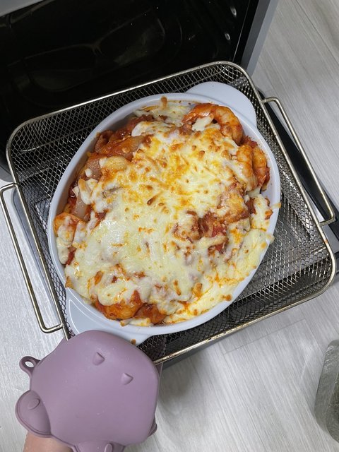 그냥 토마토스파게티 만들어서 치즈뿌리고 에어프라이어에