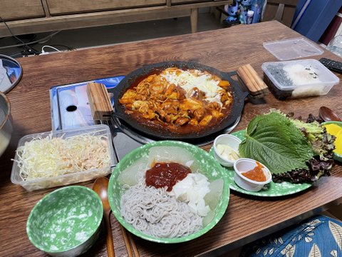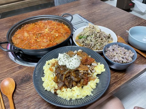부대찌개, 계란말이.