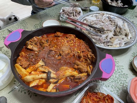 불려논 당면을 넣고 3-4분 정도 더 끓이면 완성.
