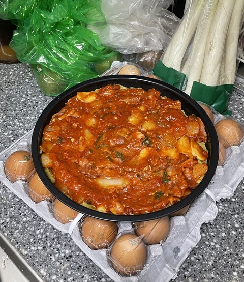 김치 들어간 음식을 엄청 먹었어요 그동안.
