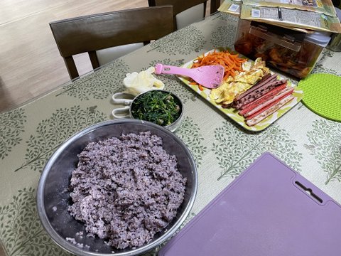 엄마와 김밥도 만들어먹고 봄동전도 부쳐먹고.