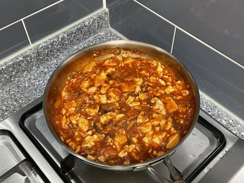 그리고 물을 자작하게 소량넣고 순두부를 넣어주는데 순두부를 넣으면