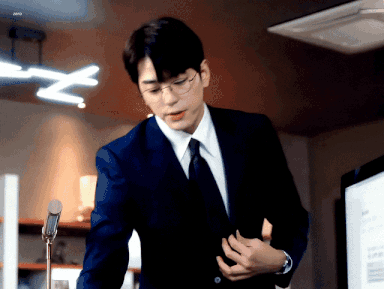 단추 끝까지 + 넥타이 꽉 + 정장 + 안경