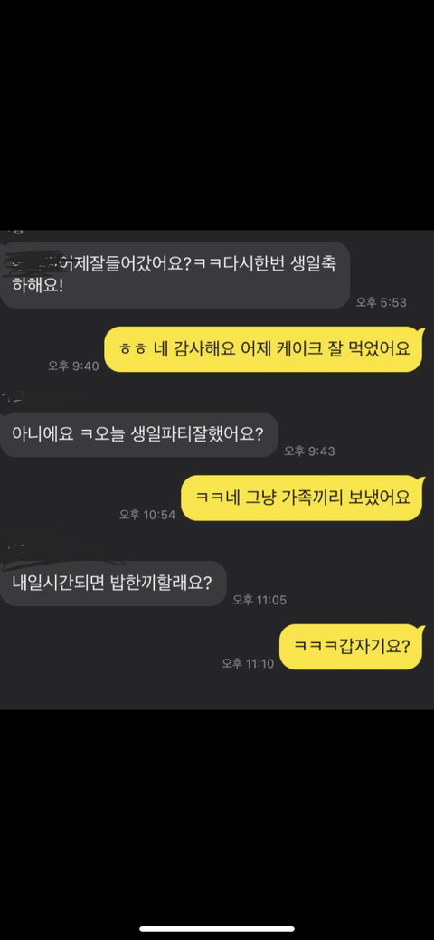 남녀 카톡 내용 어때보임 왼쪽이 남자고 35살 오른쪽이 여자 26살