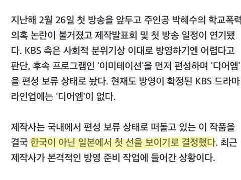 아니 그 논란이 있었는데 일본에 방영한다고...? ㅋㅋ 학폭은 우리나라 보다 일본이 더 심한걸로 알고 있는데