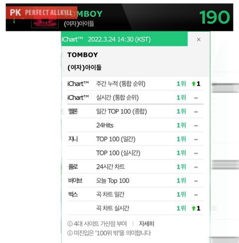 아이들 모든 차트 1위 pak 달성 했어