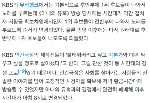 그 시간대 방영했던 타사 프로그램에도 영향을 줌 ㅇㅇ