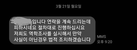 얼마 뒤 계속 전화가 오는 데 받지 않았습니다. 속도 안 좋았고 말도 섞기 싫었습니다.  그랬더니 문자가 왔습니다.