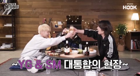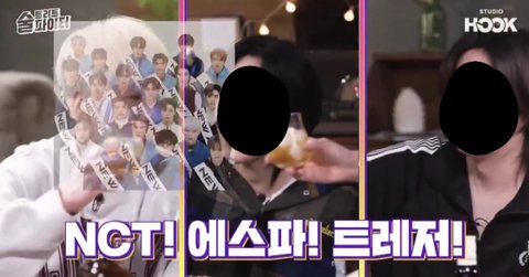 발캡이라 가림! 각자 그룹 한개씩 말하면서 건배사하는데 슈쥬선배님이 와이ㅈㅣ후배그룹 언급하고, 위ㄴㅓ 강ㅅ윤님이 엔시티 언급하심ㅋㅋㅋ 갑자기 엔시티 나와서 냅다 캡처했다,,ㅎㅎ