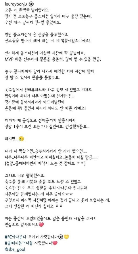 골때녀 아나콘다 멤버들 시즌 종료 인사