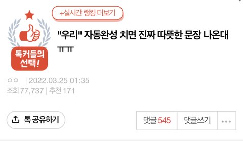 우리 천러 버블 보낸 날 너무 오버하면 그 결과 힘들다