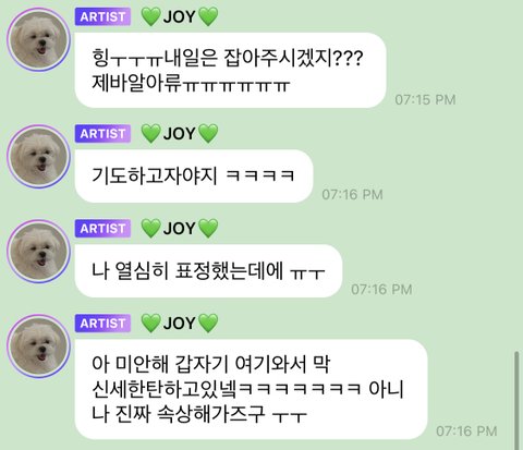 조이 다음 음방에선 잘 잡아주길 기도하면서 잔대ㅠㅋㅋㅋ 기도한다는거 왤케 귀엽냐ㅠㅠ