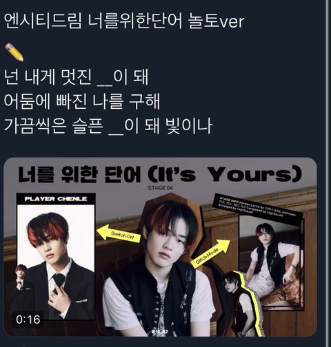 너넨 너를 위한 단어 가사 뭐 일 거 같아?