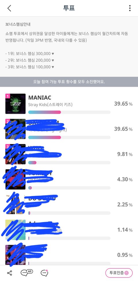 나 투표 광클하다가 중간에 순위 바껴서 몇번 잘못 누름
