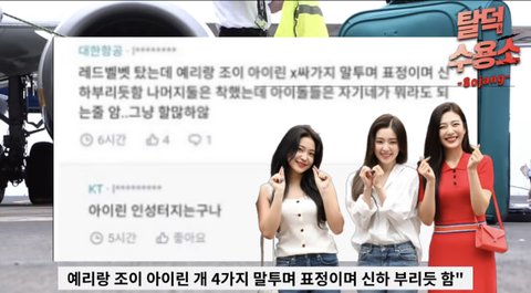 레드벨벳아이린 인성논란 또 터졌다 조리 예리