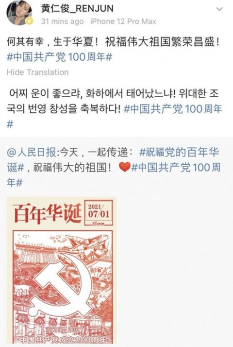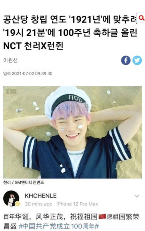 몇 달 전에 중국 공산당 창당 100주년을 공개적으로 축하한 그룹이 바로 내일 컴백하는 '엔시티드림'
