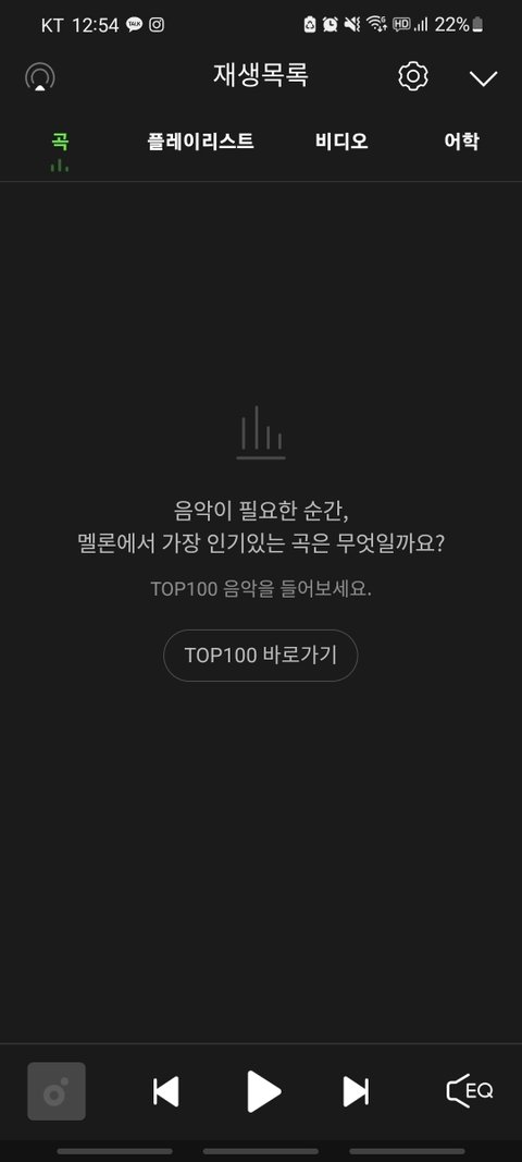 이게 멜론 UI인데 저기 보면 '곡'이 있고 '플레이리스트' 가 있잖아 우리는 '곡'에서 스밍을 돌려야하거든 그래서 저기 들어있는 노래가 0이어야해