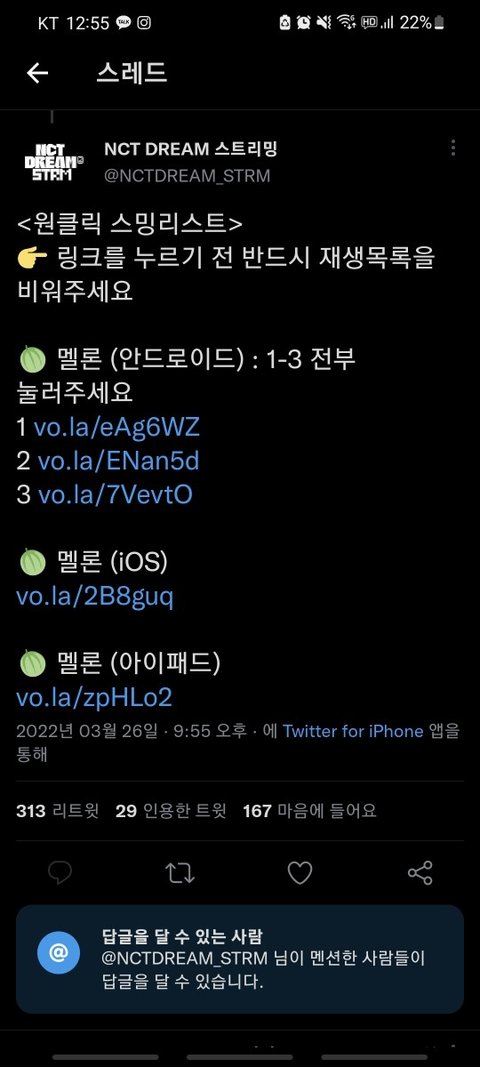 스밍리스트 올라올때 같이 원클릭이 바로 뜬대!! 스밍팀 계정에서 그냥 음싸별 원클릭 링크 누르면 자동으로 다 돼