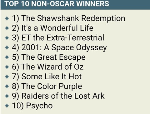 참고로 아카데미 무관 영화 베스트 10에 꼽힌 영화들 면면도 화려한데